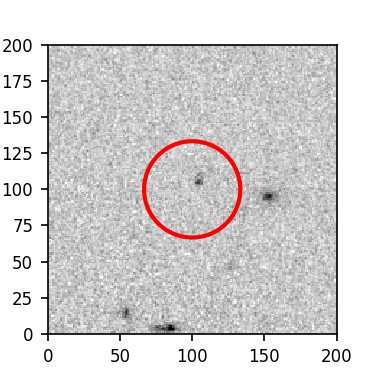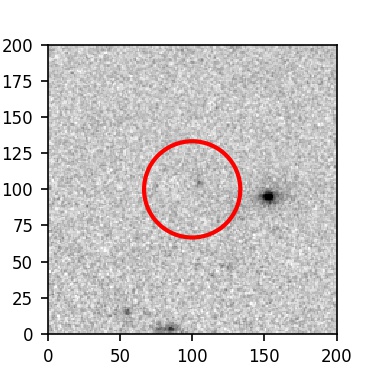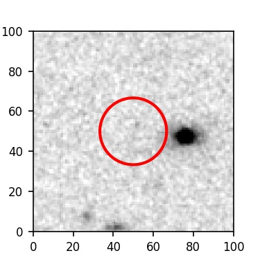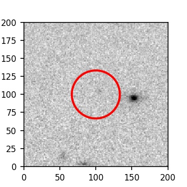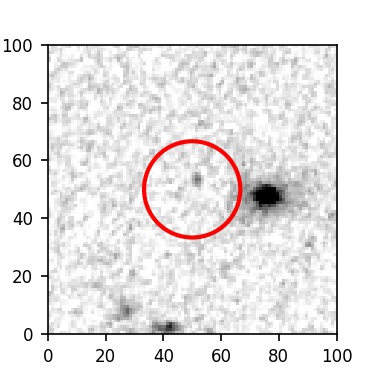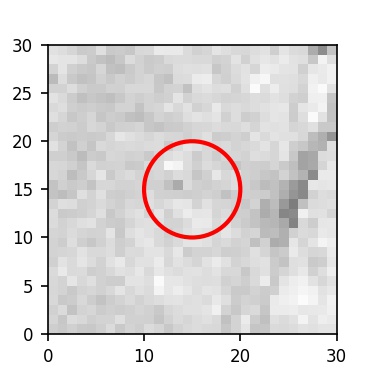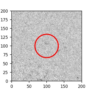 The red circle in the various panels is 1" in radius. The images are 6"x6".