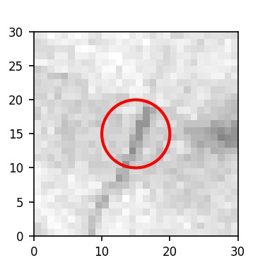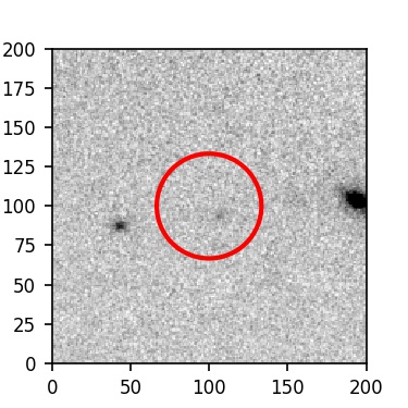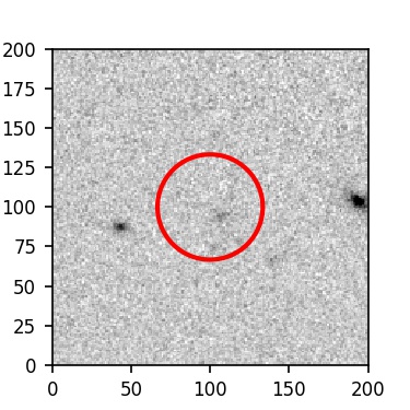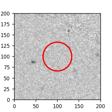 The red circle in the various panels is 1" in radius. The images are 6"x6".