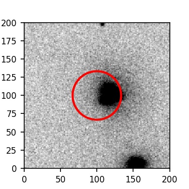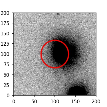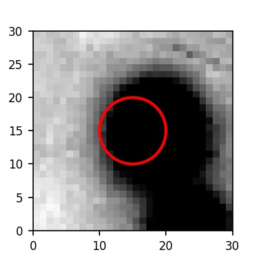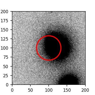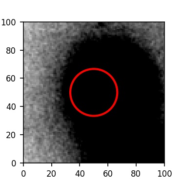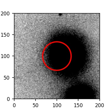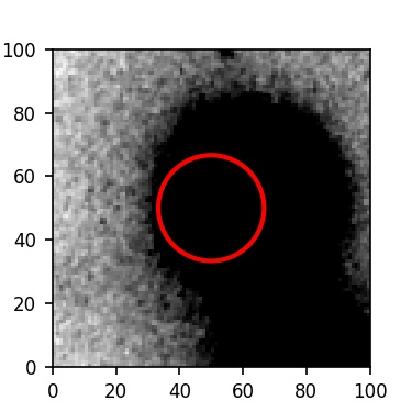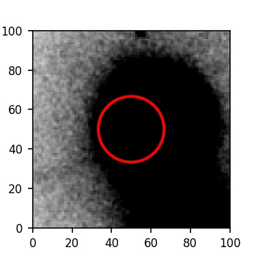 The red circle in the various panels is 1" in radius. The images are 6"x6".
