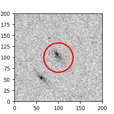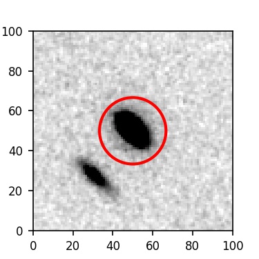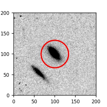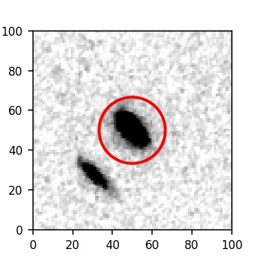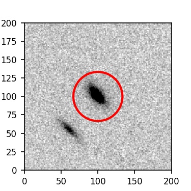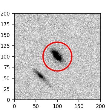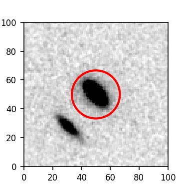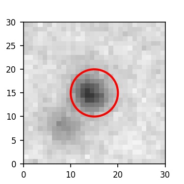 The red circle in the various panels is 1" in radius. The images are 6"x6".