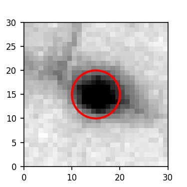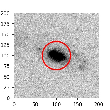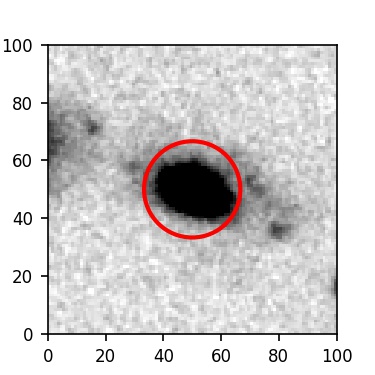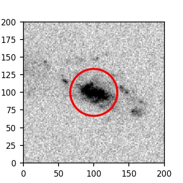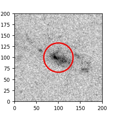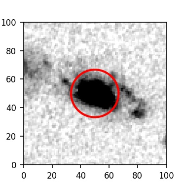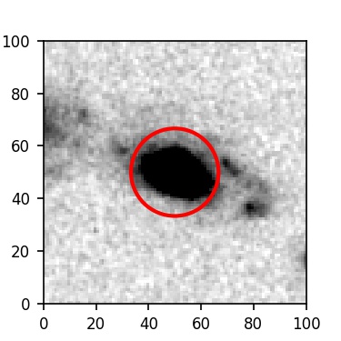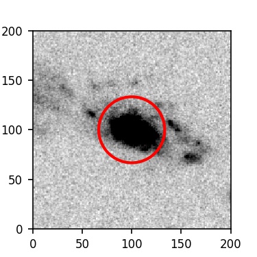 The red circle in the various panels is 1" in radius. The images are 6"x6".