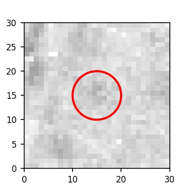 The red circle in the various panels is 1" in radius. The images are 6"x6".