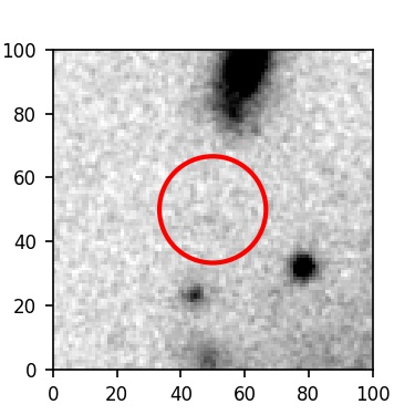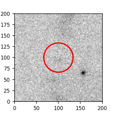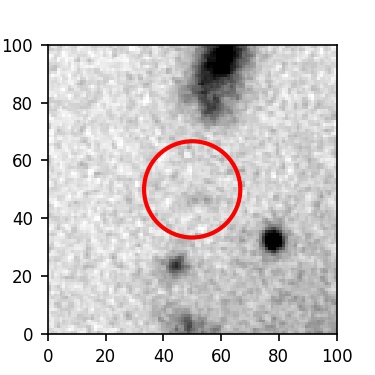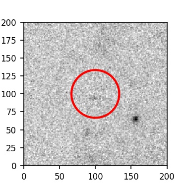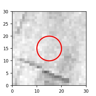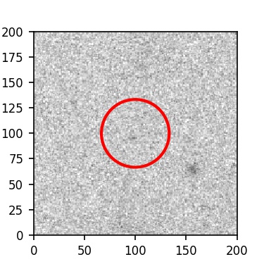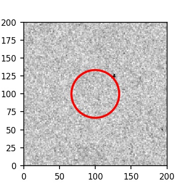 The red circle in the various panels is 1" in radius. The images are 6"x6".