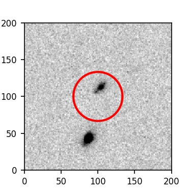 The red circle in the various panels is 1" in radius. The images are 6"x6".