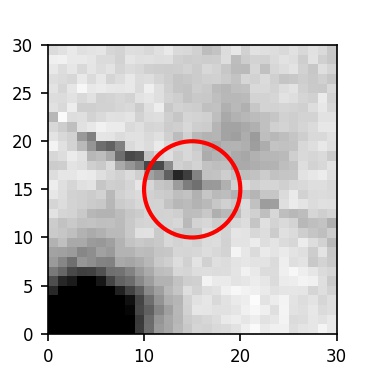 The red circle in the various panels is 1" in radius. The images are 6"x6".