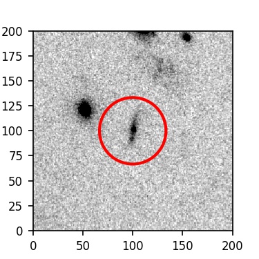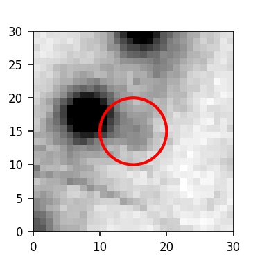 The red circle in the various panels is 1" in radius. The images are 6"x6".