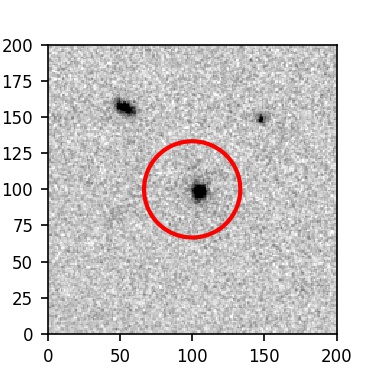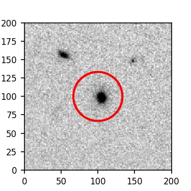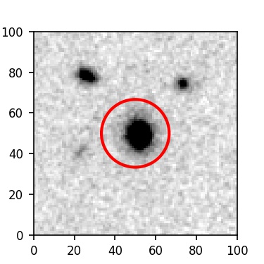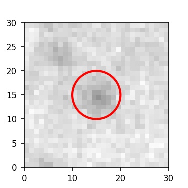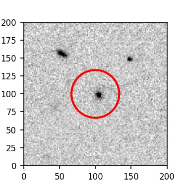 The red circle in the various panels is 1" in radius. The images are 6"x6".