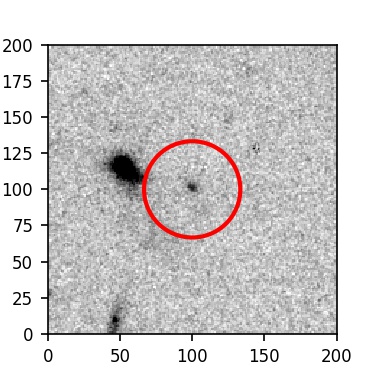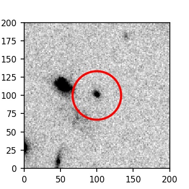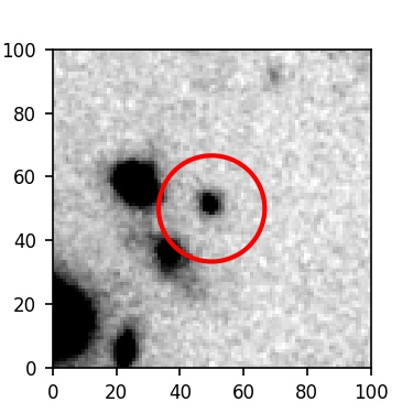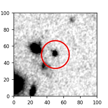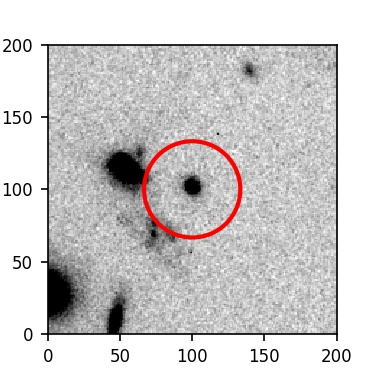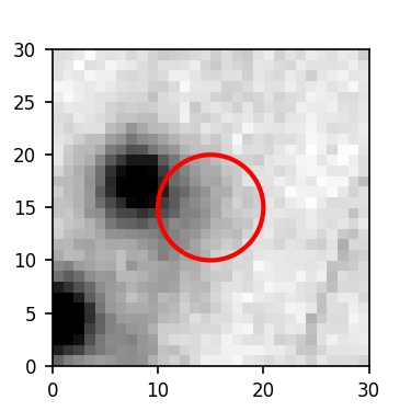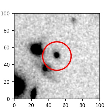 The red circle in the various panels is 1" in radius. The images are 6"x6".