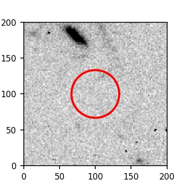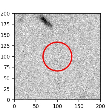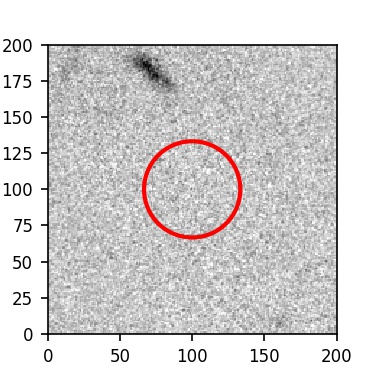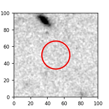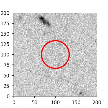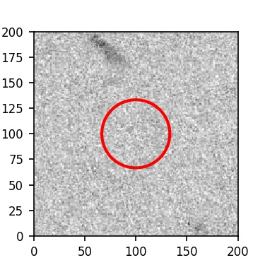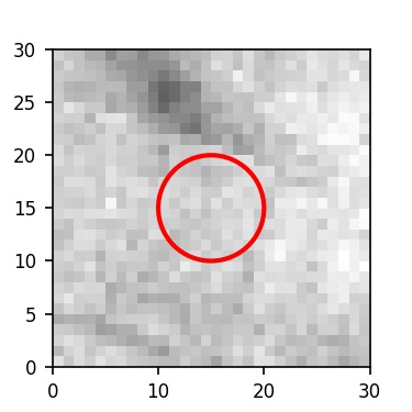 The red circle in the various panels is 1" in radius. The images are 6"x6".