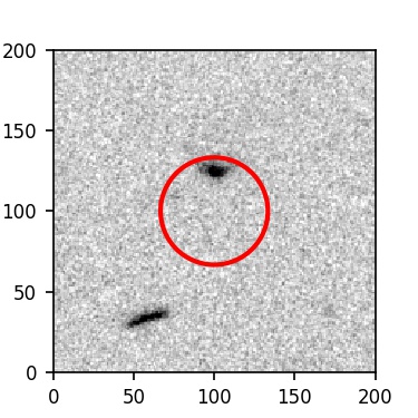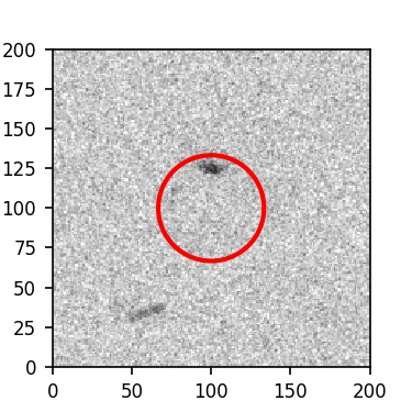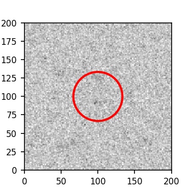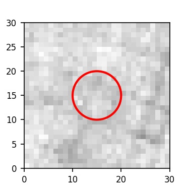 The red circle in the various panels is 1" in radius. The images are 6"x6".