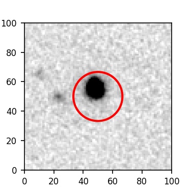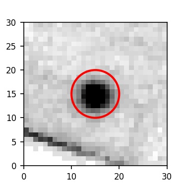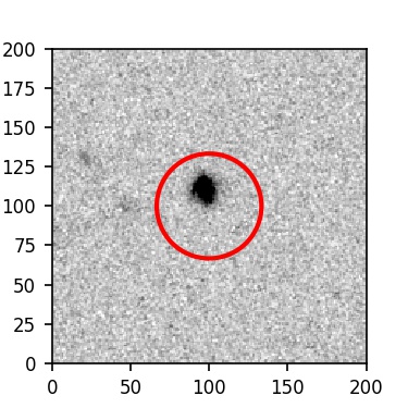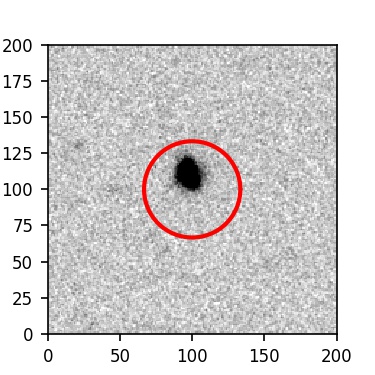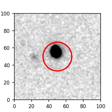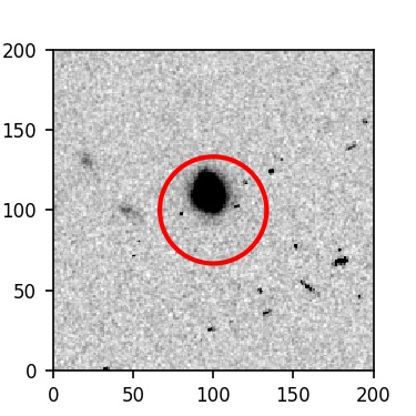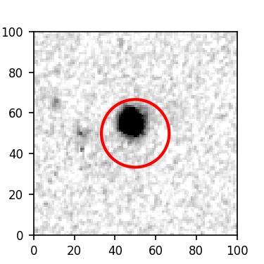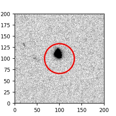 The red circle in the various panels is 1" in radius. The images are 6"x6".