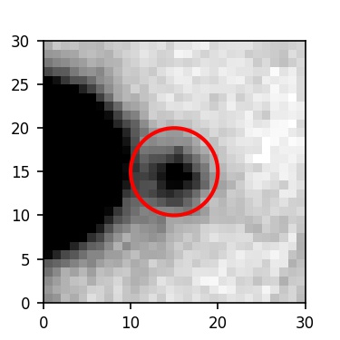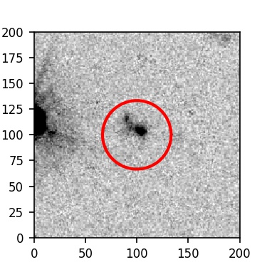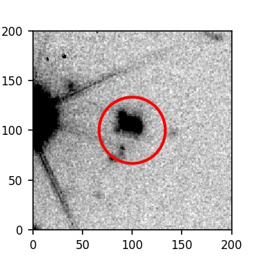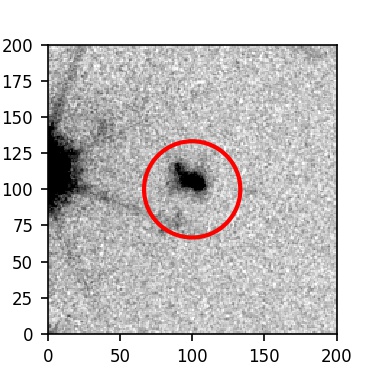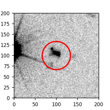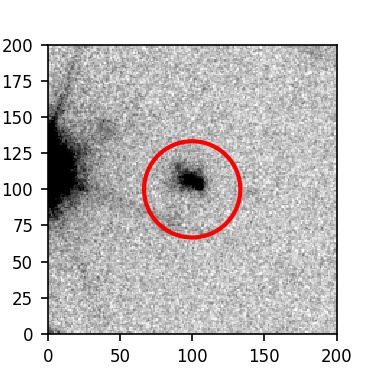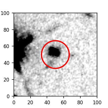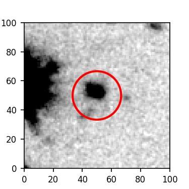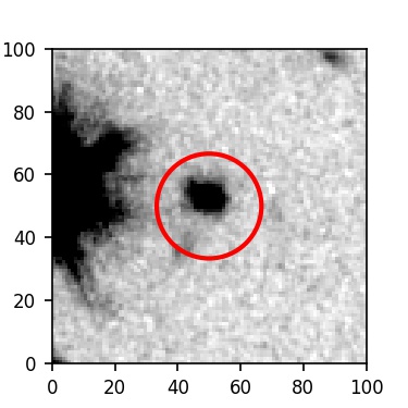 The red circle in the various panels is 1" in radius. The images are 6"x6".