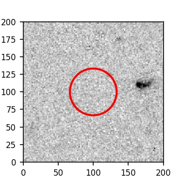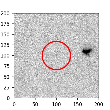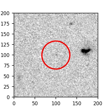 The red circle in the various panels is 1" in radius. The images are 6"x6".