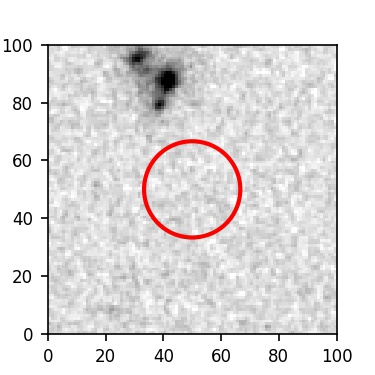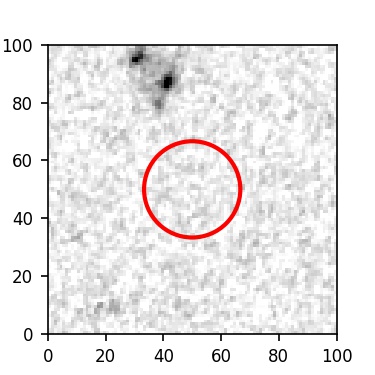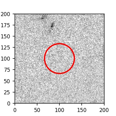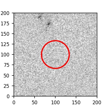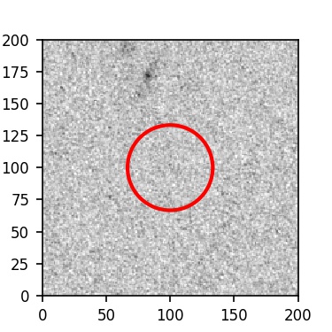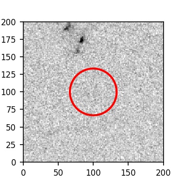 The red circle in the various panels is 1" in radius. The images are 6"x6".