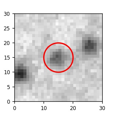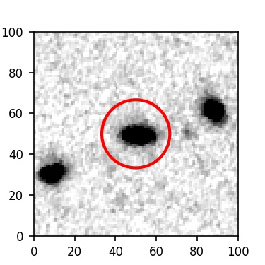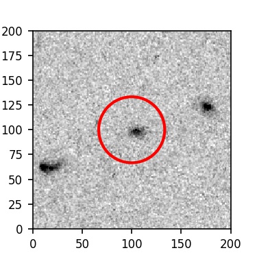 The red circle in the various panels is 1" in radius. The images are 6"x6".