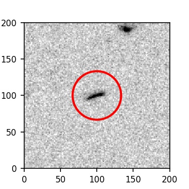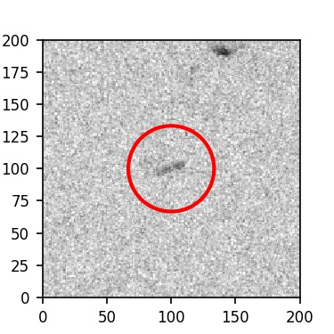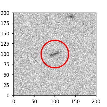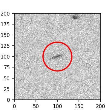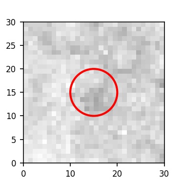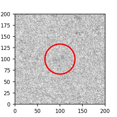 The red circle in the various panels is 1" in radius. The images are 6"x6".