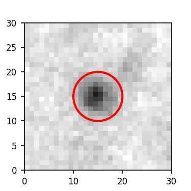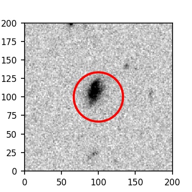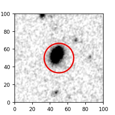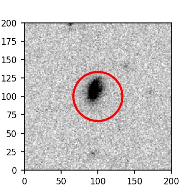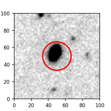 The red circle in the various panels is 1" in radius. The images are 6"x6".
