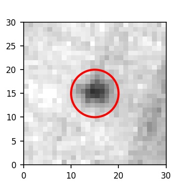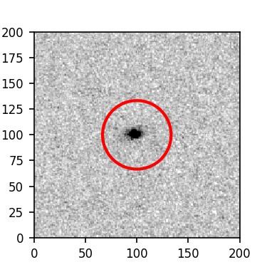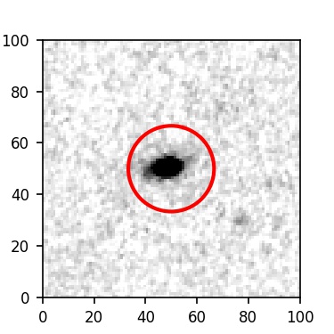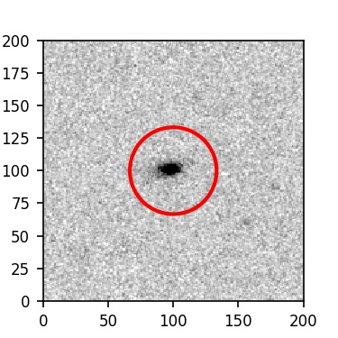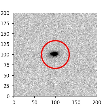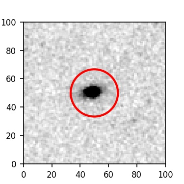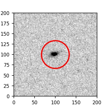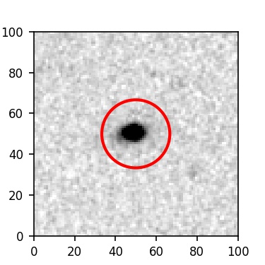 The red circle in the various panels is 1" in radius. The images are 6"x6".