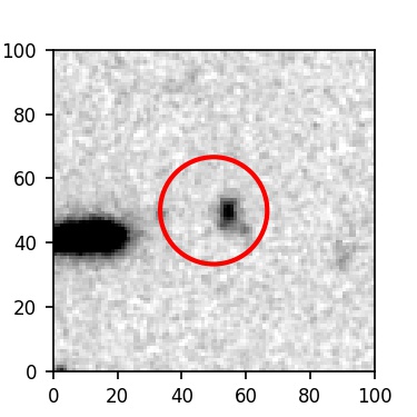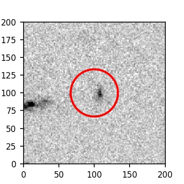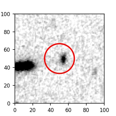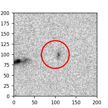 The red circle in the various panels is 1" in radius. The images are 6"x6".