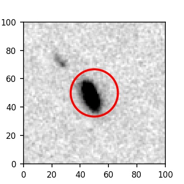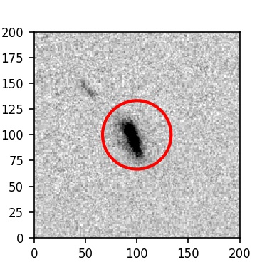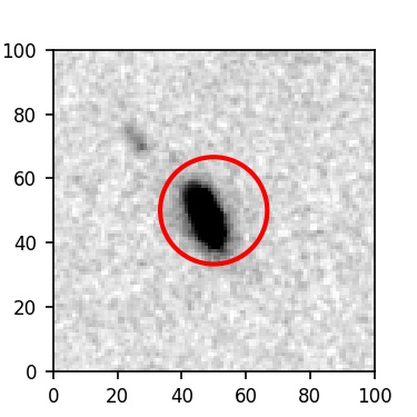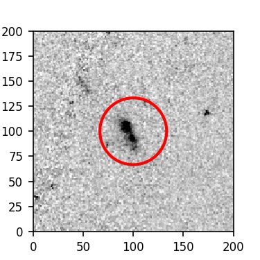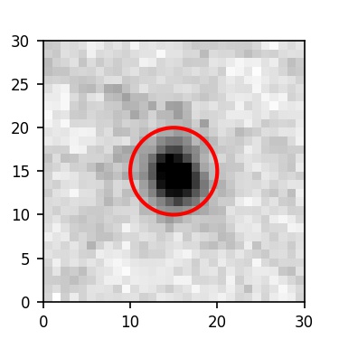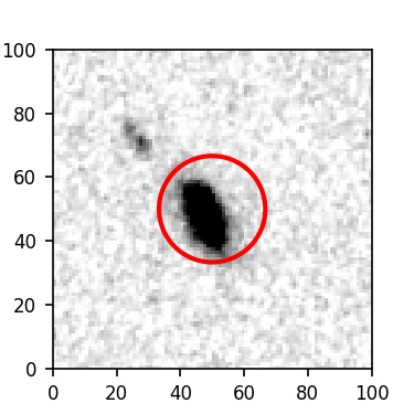 The red circle in the various panels is 1" in radius. The images are 6"x6".