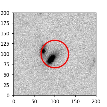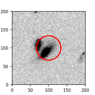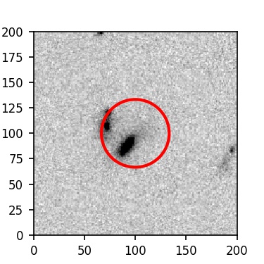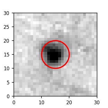 The red circle in the various panels is 1" in radius. The images are 6"x6".