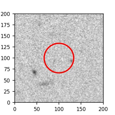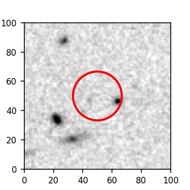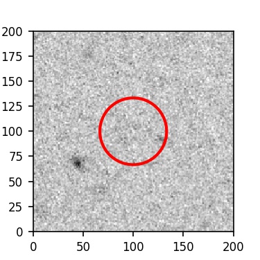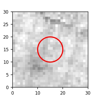 The red circle in the various panels is 1" in radius. The images are 6"x6".