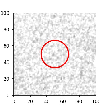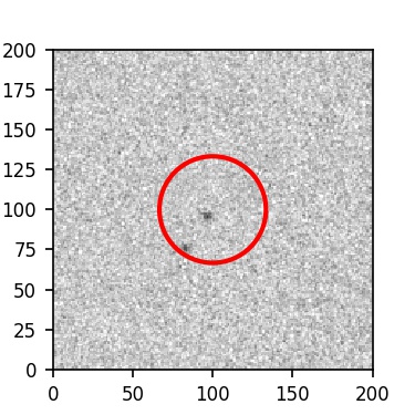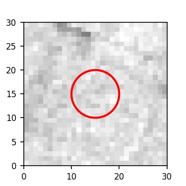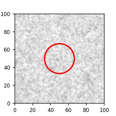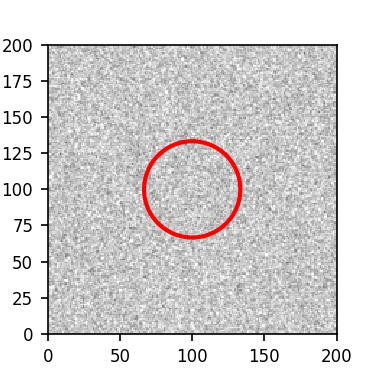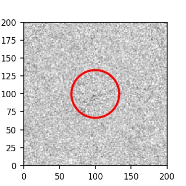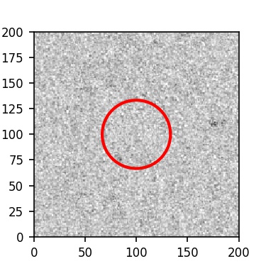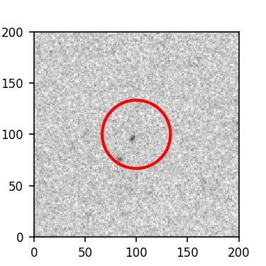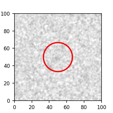 The red circle in the various panels is 1" in radius. The images are 6"x6".