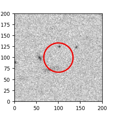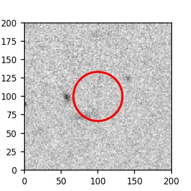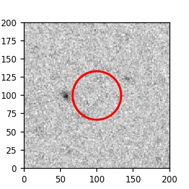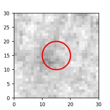 The red circle in the various panels is 1" in radius. The images are 6"x6".