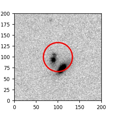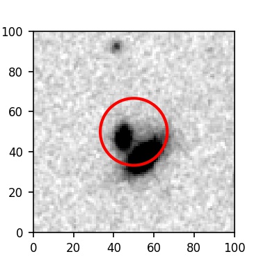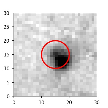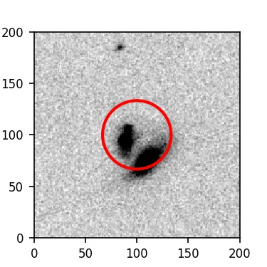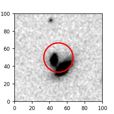The red circle in the various panels is 1" in radius. The images are 6"x6".