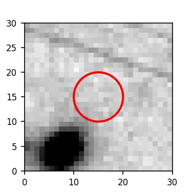 The red circle in the various panels is 1" in radius. The images are 6"x6".