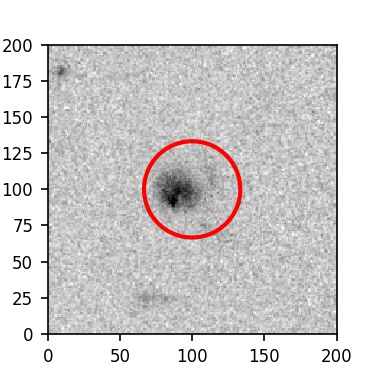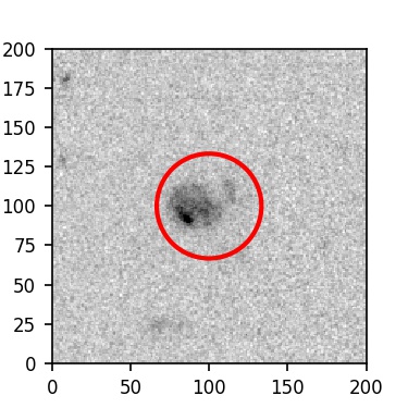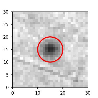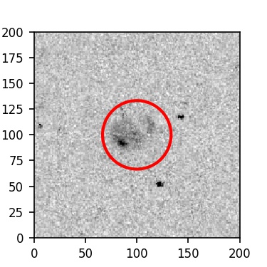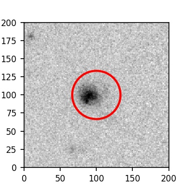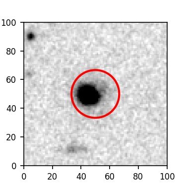 The red circle in the various panels is 1" in radius. The images are 6"x6".