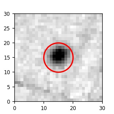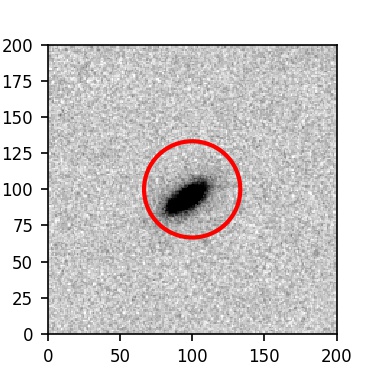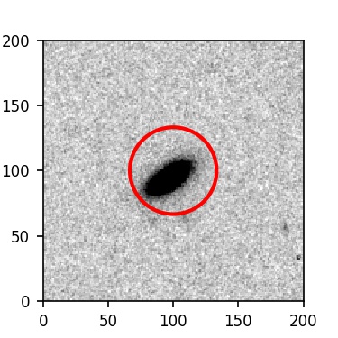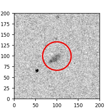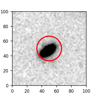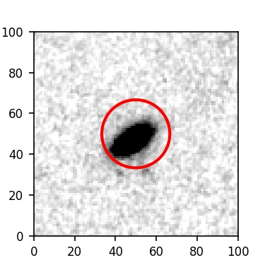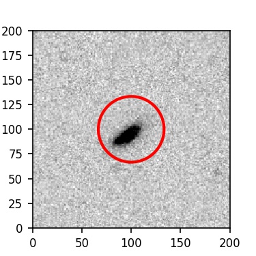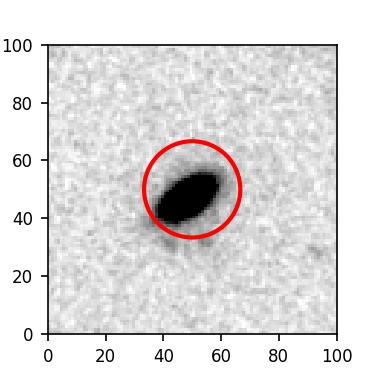 The red circle in the various panels is 1" in radius. The images are 6"x6".