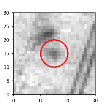 The red circle in the various panels is 1" in radius. The images are 6"x6".