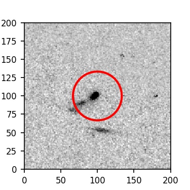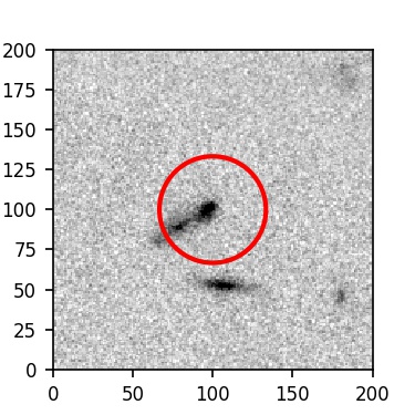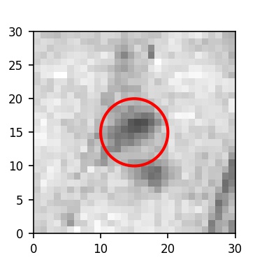 The red circle in the various panels is 1" in radius. The images are 6"x6".