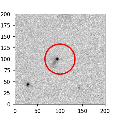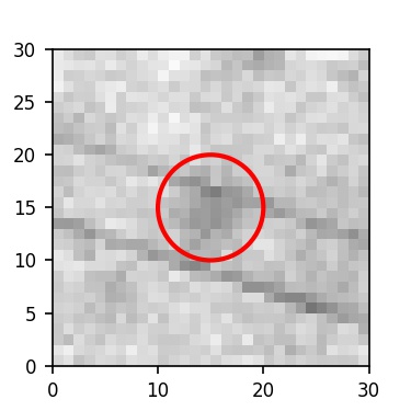 The red circle in the various panels is 1" in radius. The images are 6"x6".