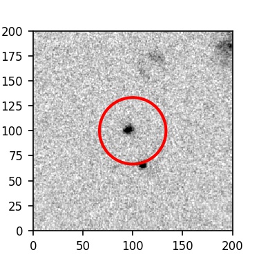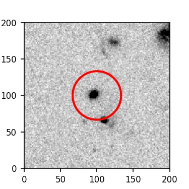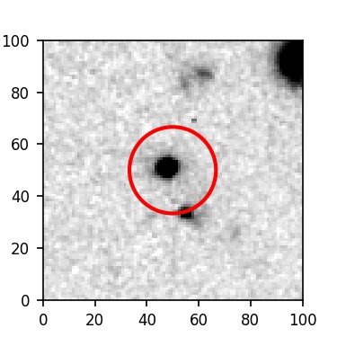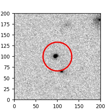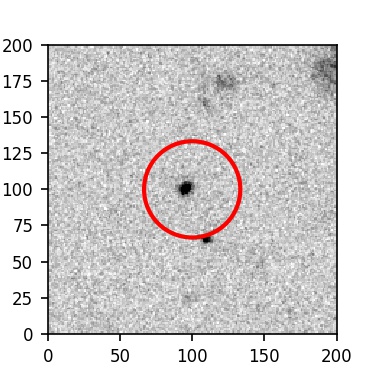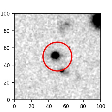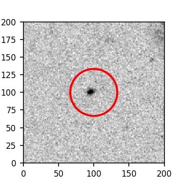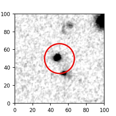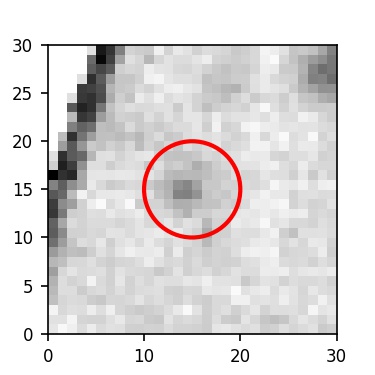 The red circle in the various panels is 1" in radius. The images are 6"x6".