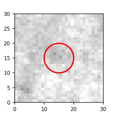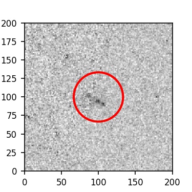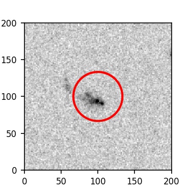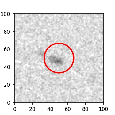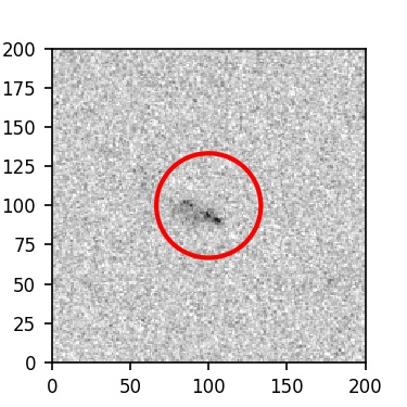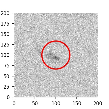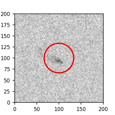 The red circle in the various panels is 1" in radius. The images are 6"x6".