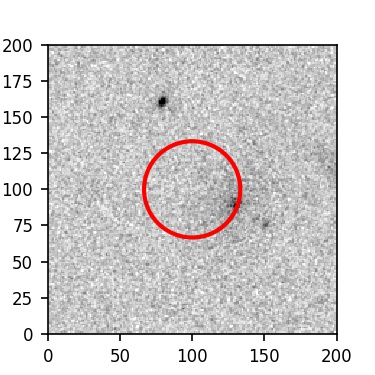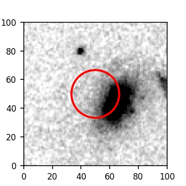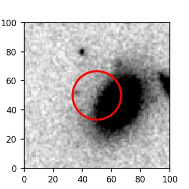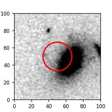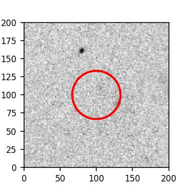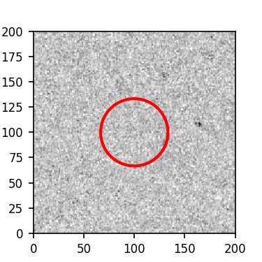 The red circle in the various panels is 1" in radius. The images are 6"x6".