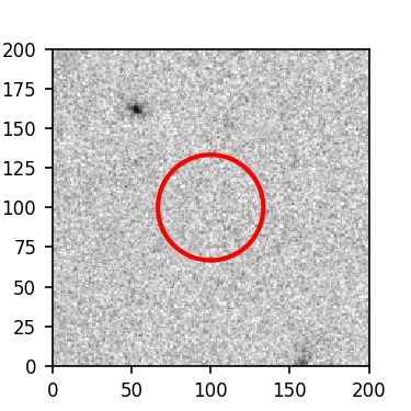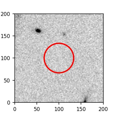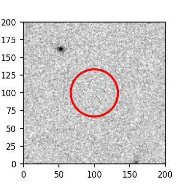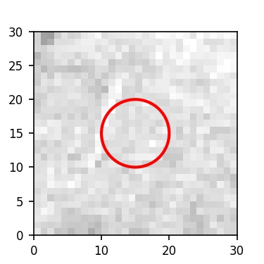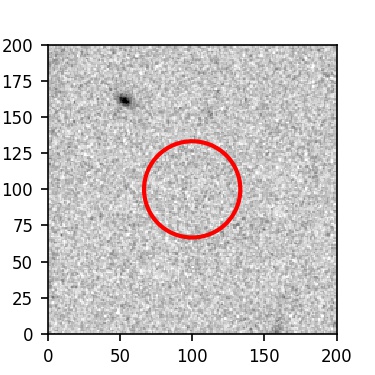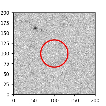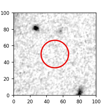 The red circle in the various panels is 1" in radius. The images are 6"x6".