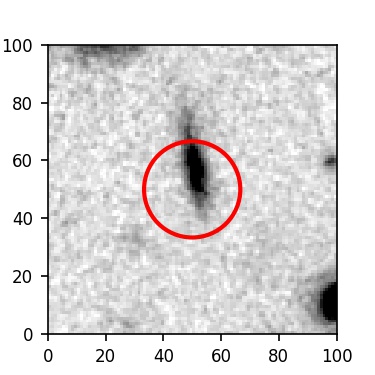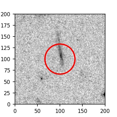 The red circle in the various panels is 1" in radius. The images are 6"x6".
