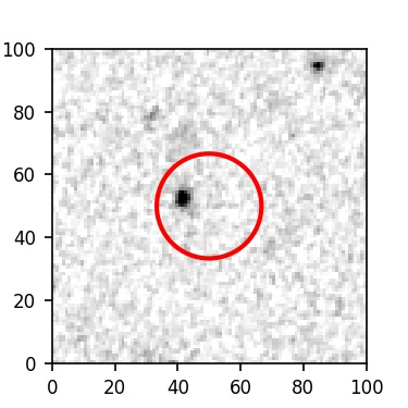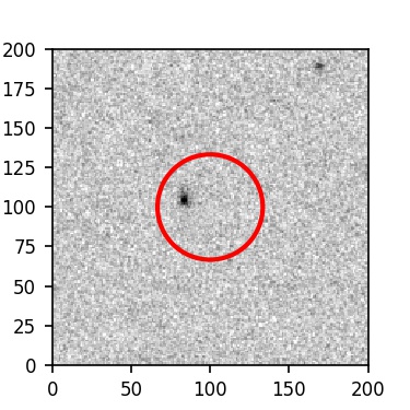 The red circle in the various panels is 1" in radius. The images are 6"x6".