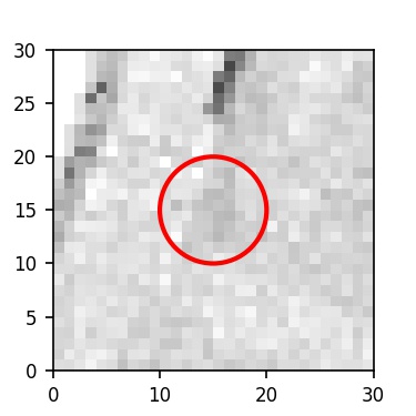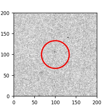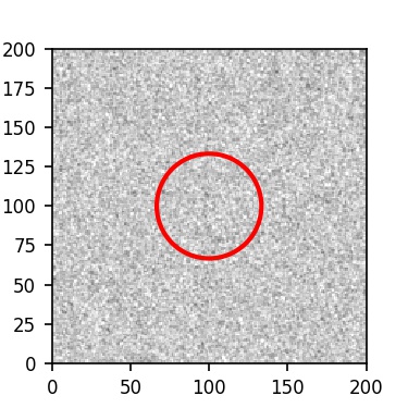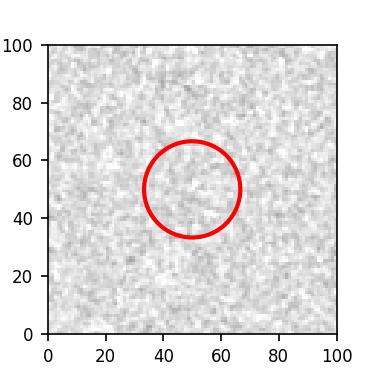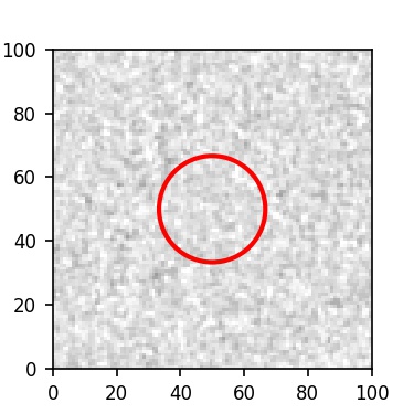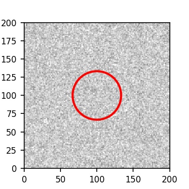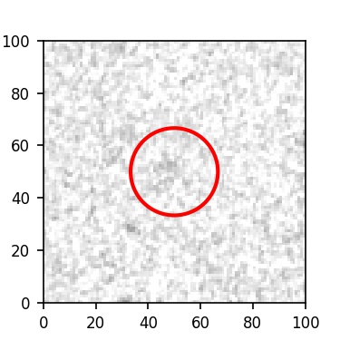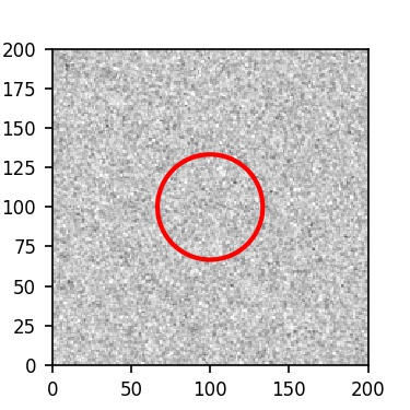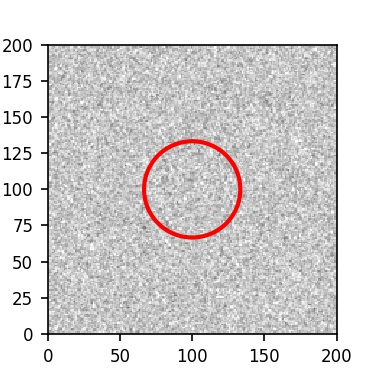 The red circle in the various panels is 1" in radius. The images are 6"x6".