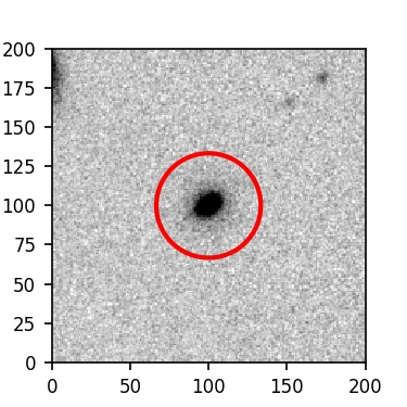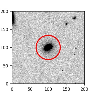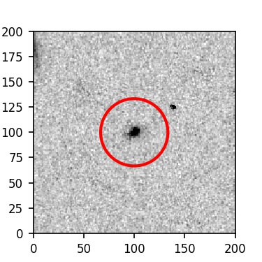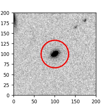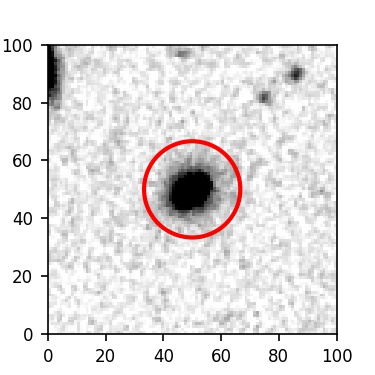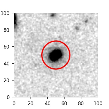 The red circle in the various panels is 1" in radius. The images are 6"x6".
