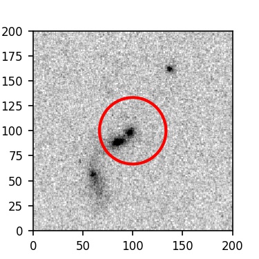 The red circle in the various panels is 1" in radius. The images are 6"x6".