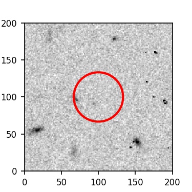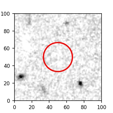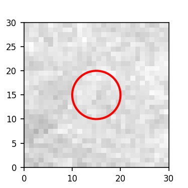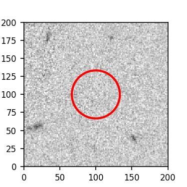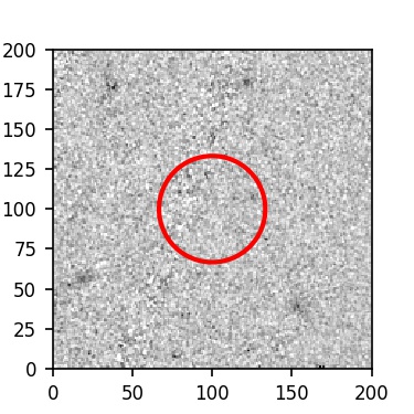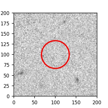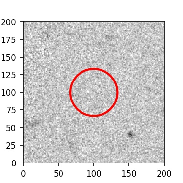 The red circle in the various panels is 1" in radius. The images are 6"x6".