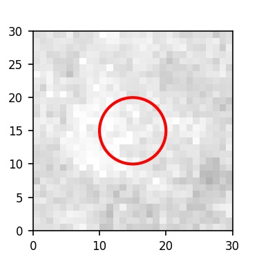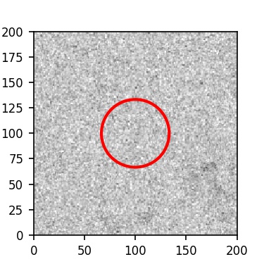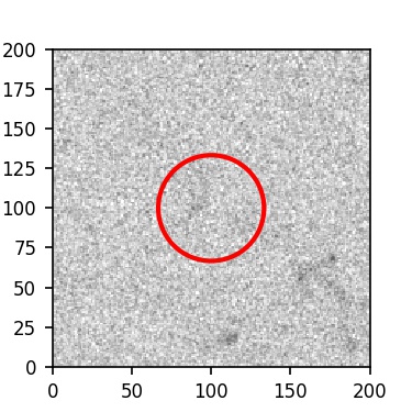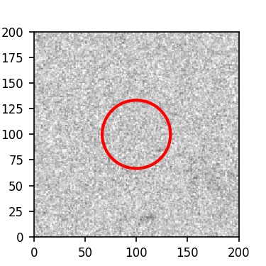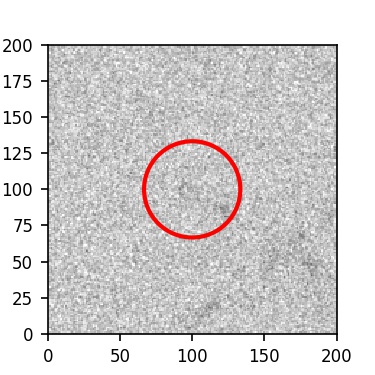 The red circle in the various panels is 1" in radius. The images are 6"x6".
