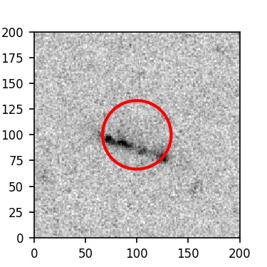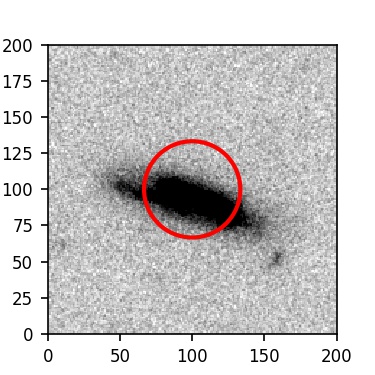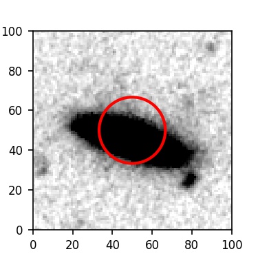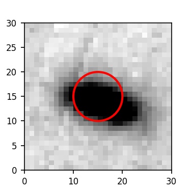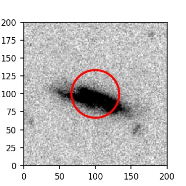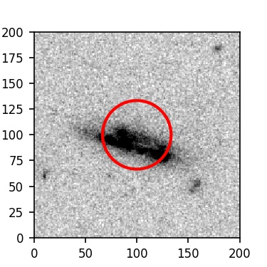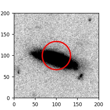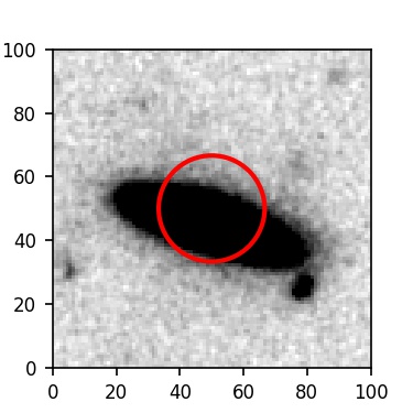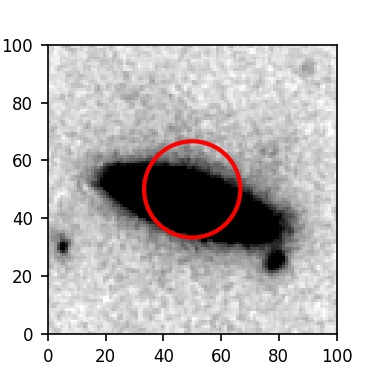 The red circle in the various panels is 1" in radius. The images are 6"x6".