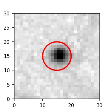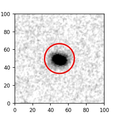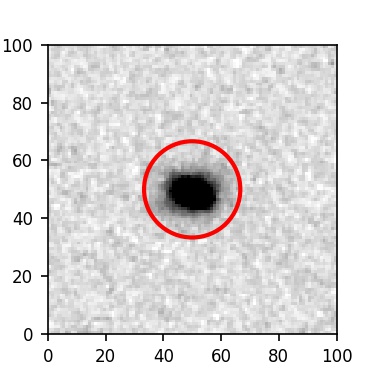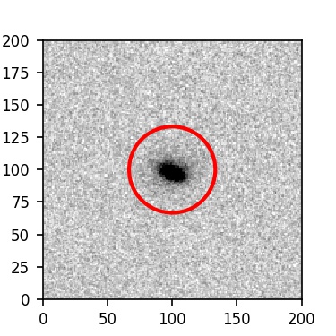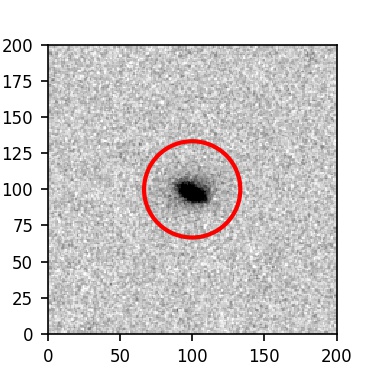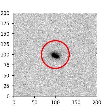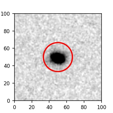The red circle in the various panels is 1" in radius. The images are 6"x6".