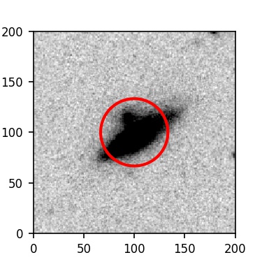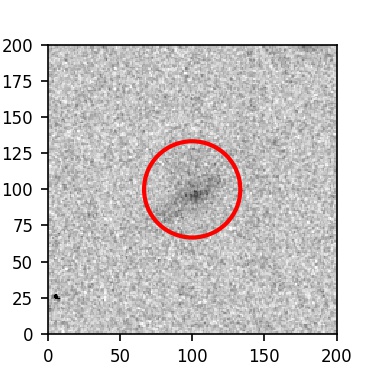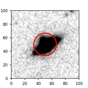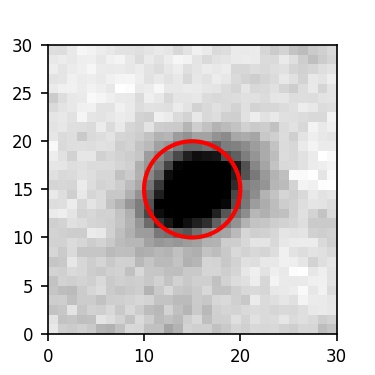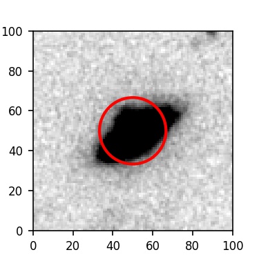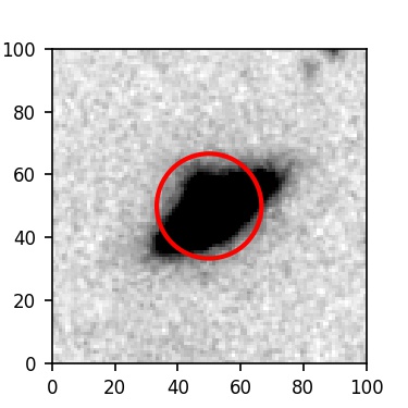 The red circle in the various panels is 1" in radius. The images are 6"x6".