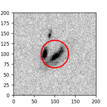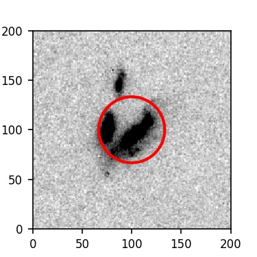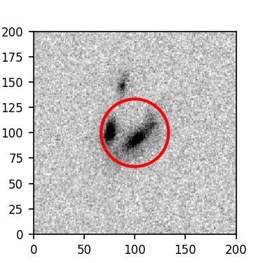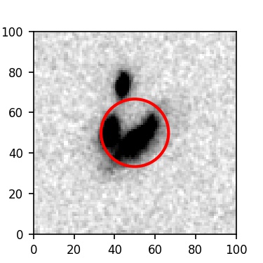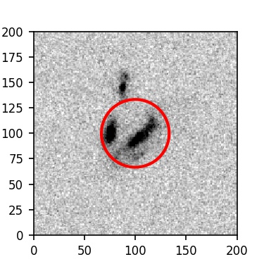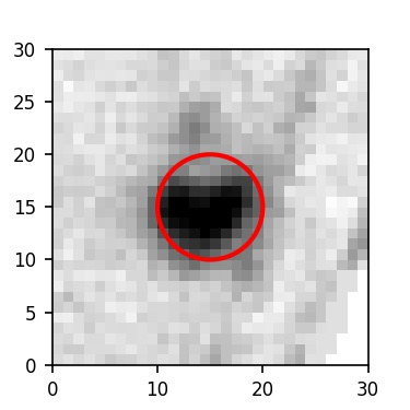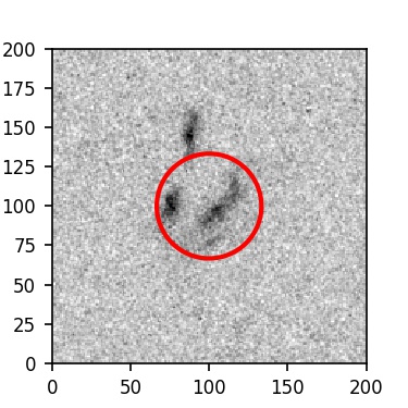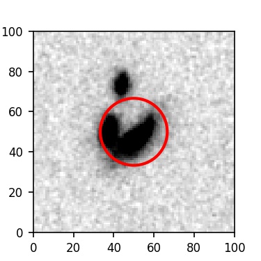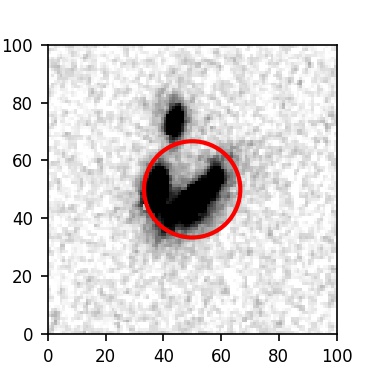 The red circle in the various panels is 1" in radius. The images are 6"x6".